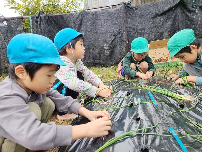 11/24 ぞう組とうさぎ組の子ともたちが玉ねぎの苗を植えました。大きく美味しい玉ねぎにな~れ♪