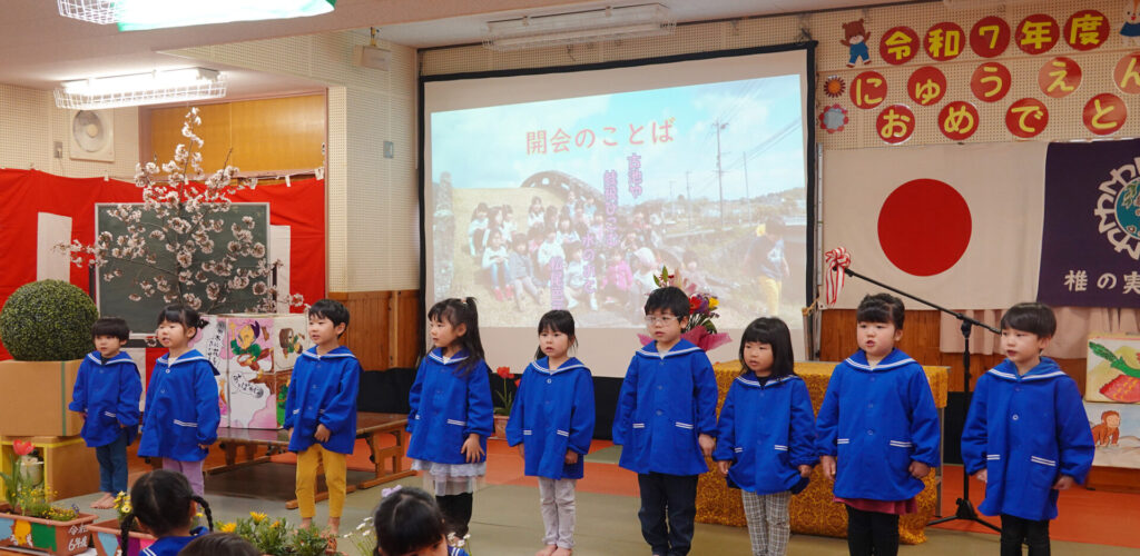 2025.4.1 入園式をしました。ぞう組のお友だちが開会のことばを言いました。