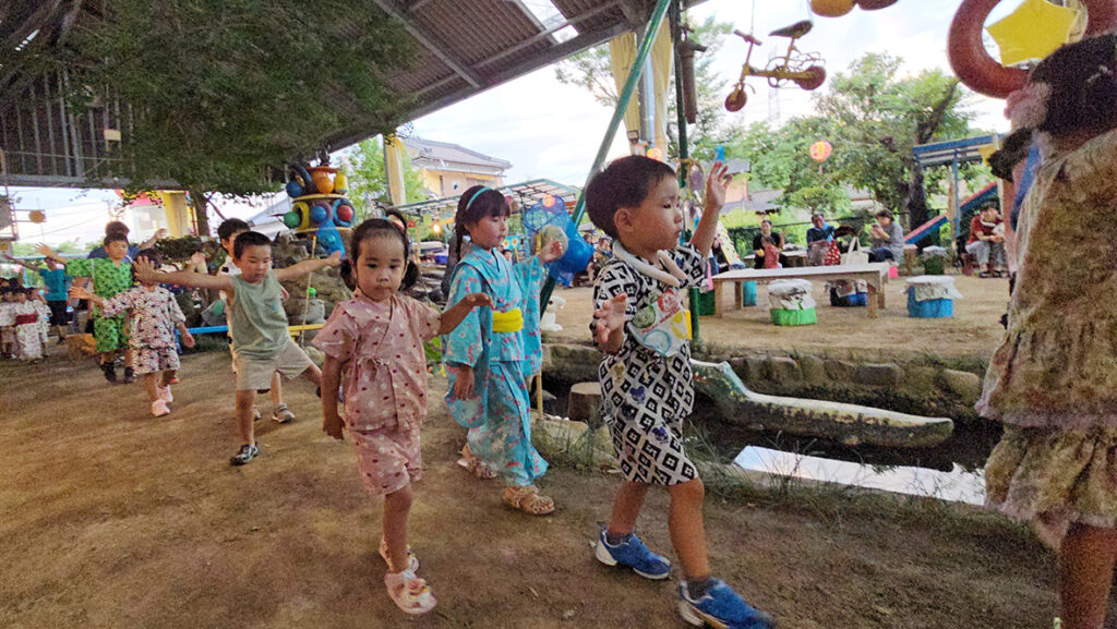 夕涼み会 2026年2月5日 2025.7.25バザー。浴衣姿がとてもかわいらしく、踊りやゲーム、屋台でのお買い物を楽しみました。 保護者の皆さまには、とても暑い中運営にご協力いただきましてありがとうございました。